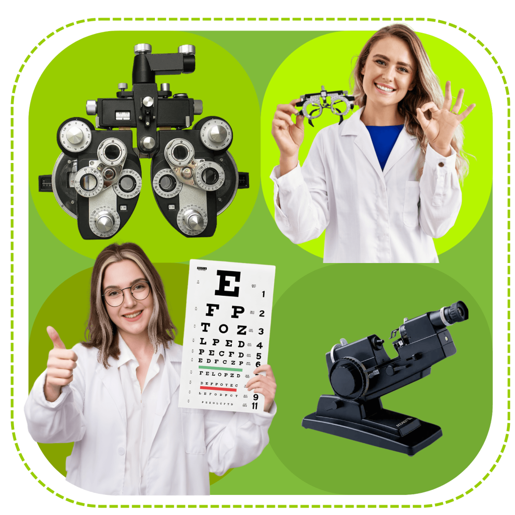 Uso de equipo profesional (foroptor, retinoscopio, etc.)